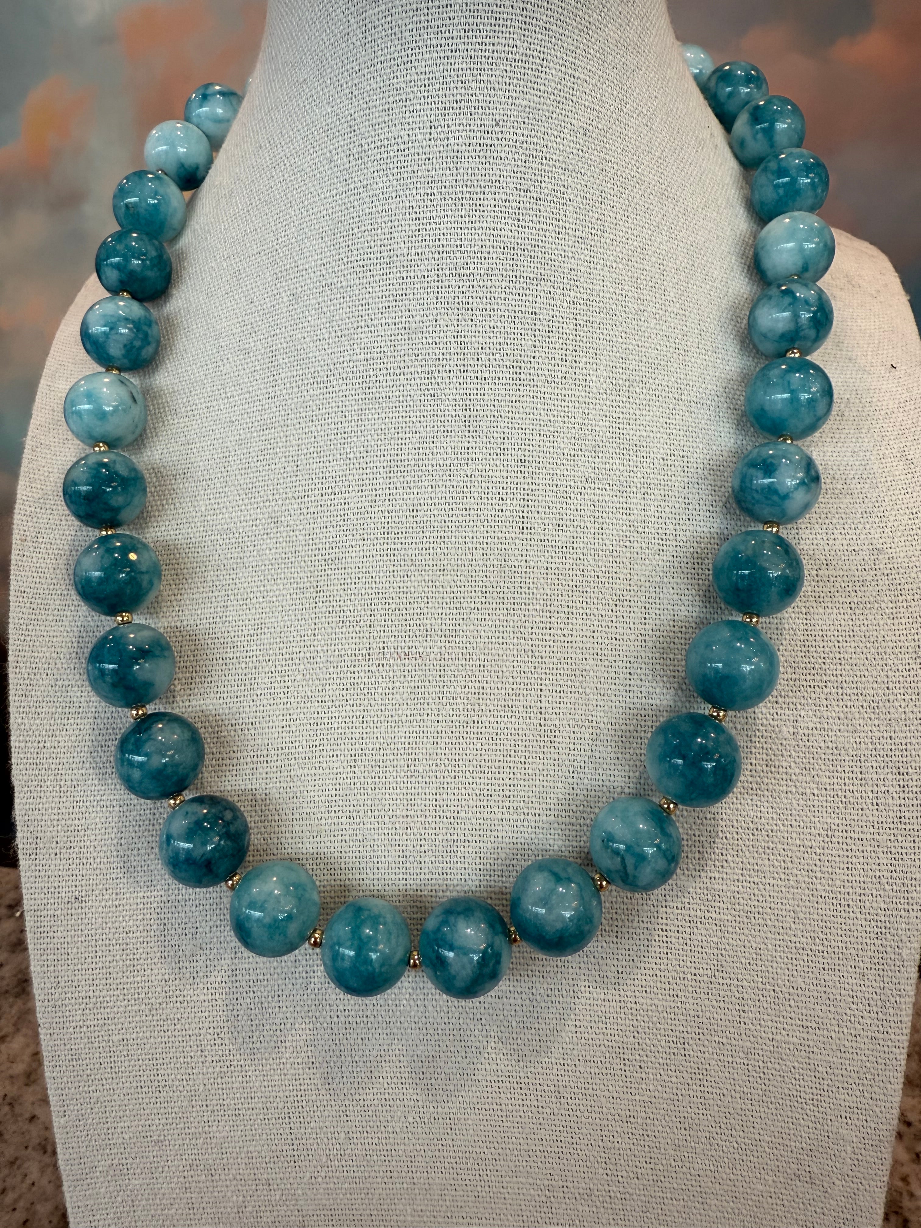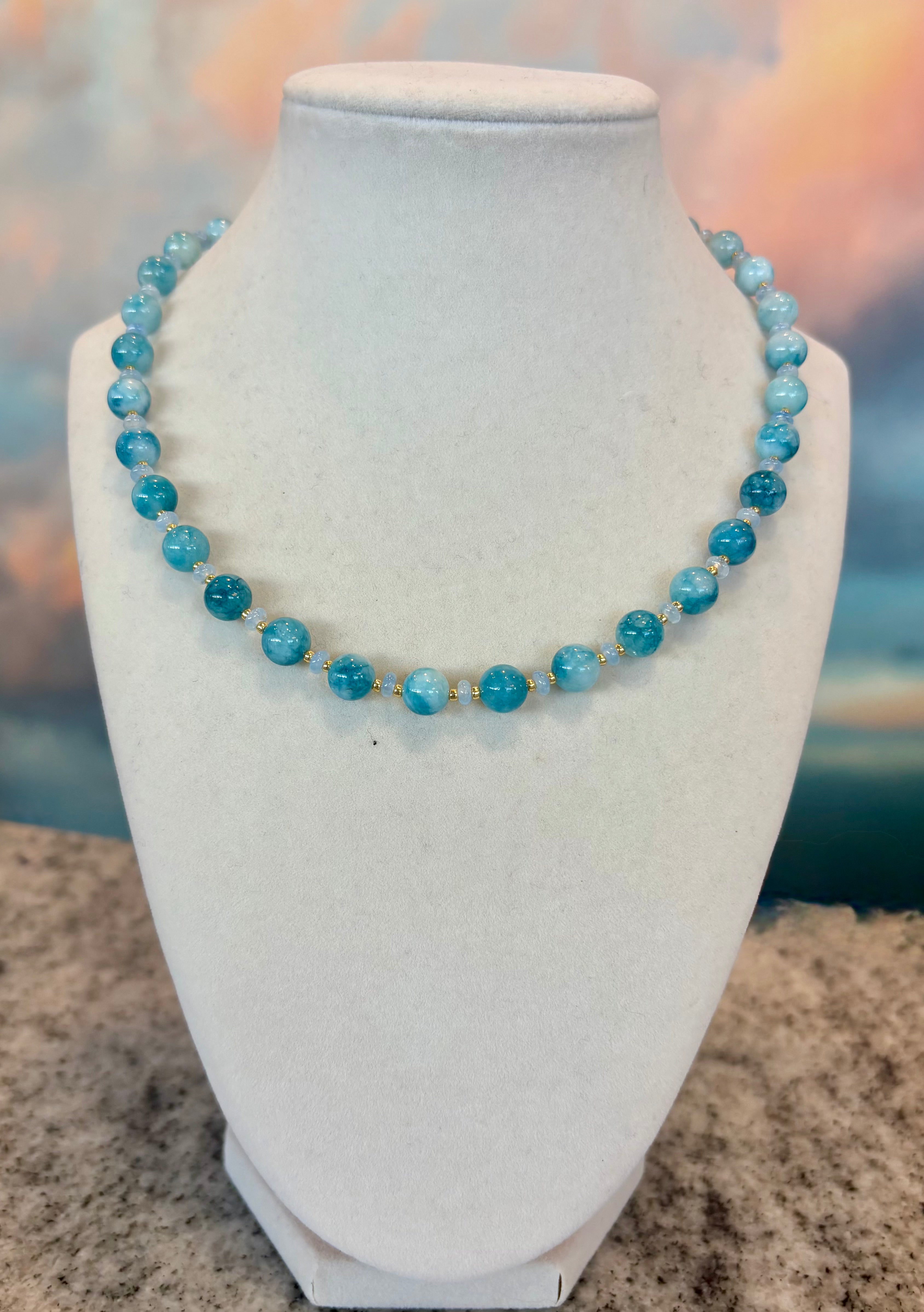 Zhanna Jewelry, Larimar and Aquamarine single strand beaded necklace.