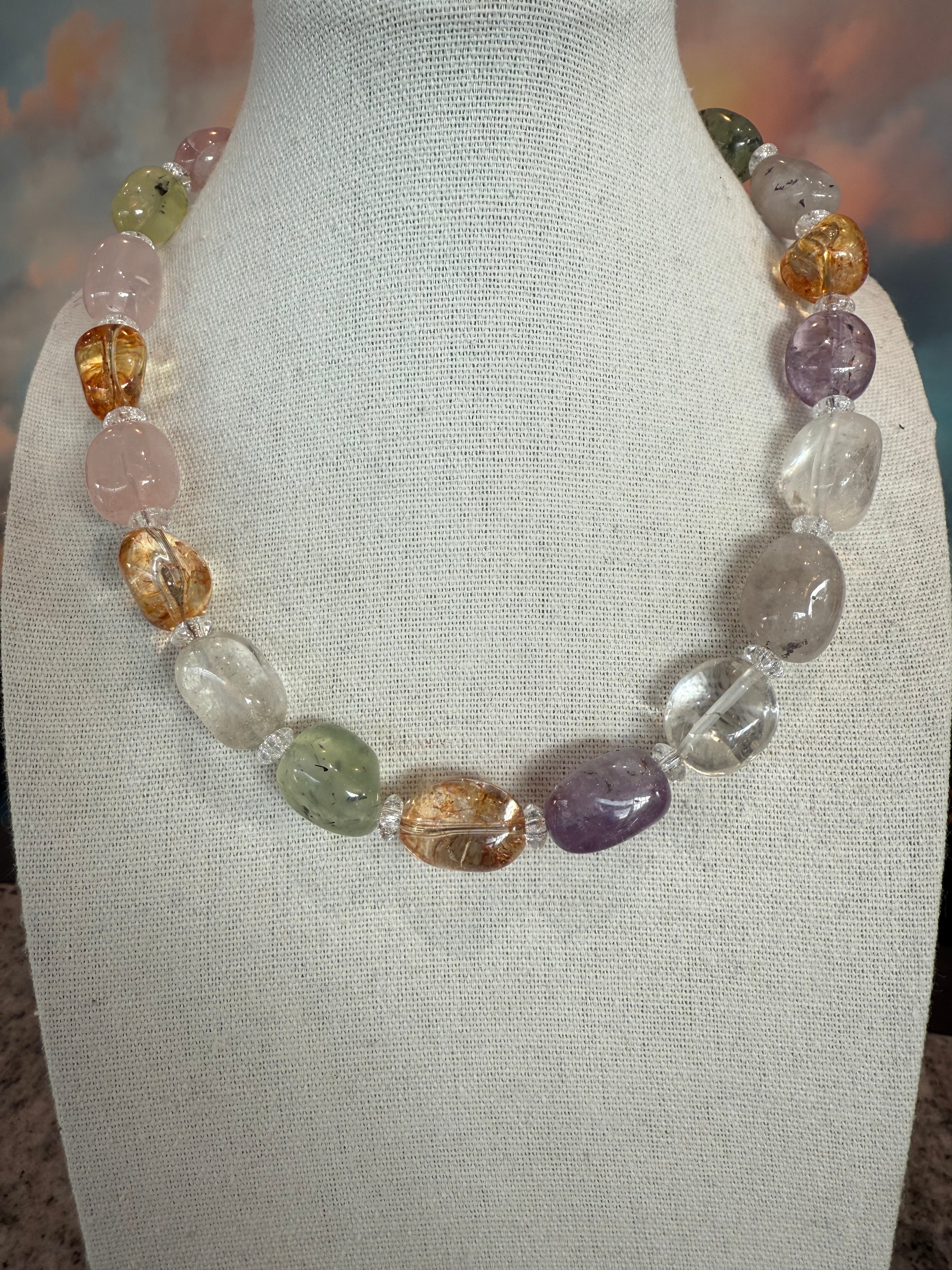 Zhanna Jewelry, Amethyst, Citrine, Prehnite, Lemon Rock Crystal Necklace