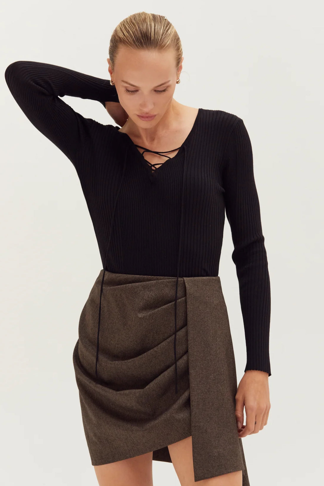 Tracey Lace Up Ribbed Knit Top, Crescent