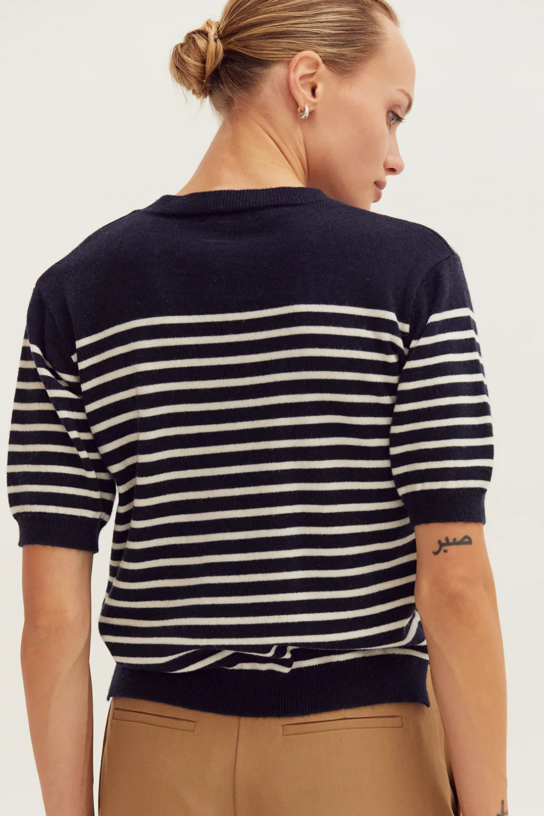 Olivia Stripe Short Sleeve Sweater Top, Crescent