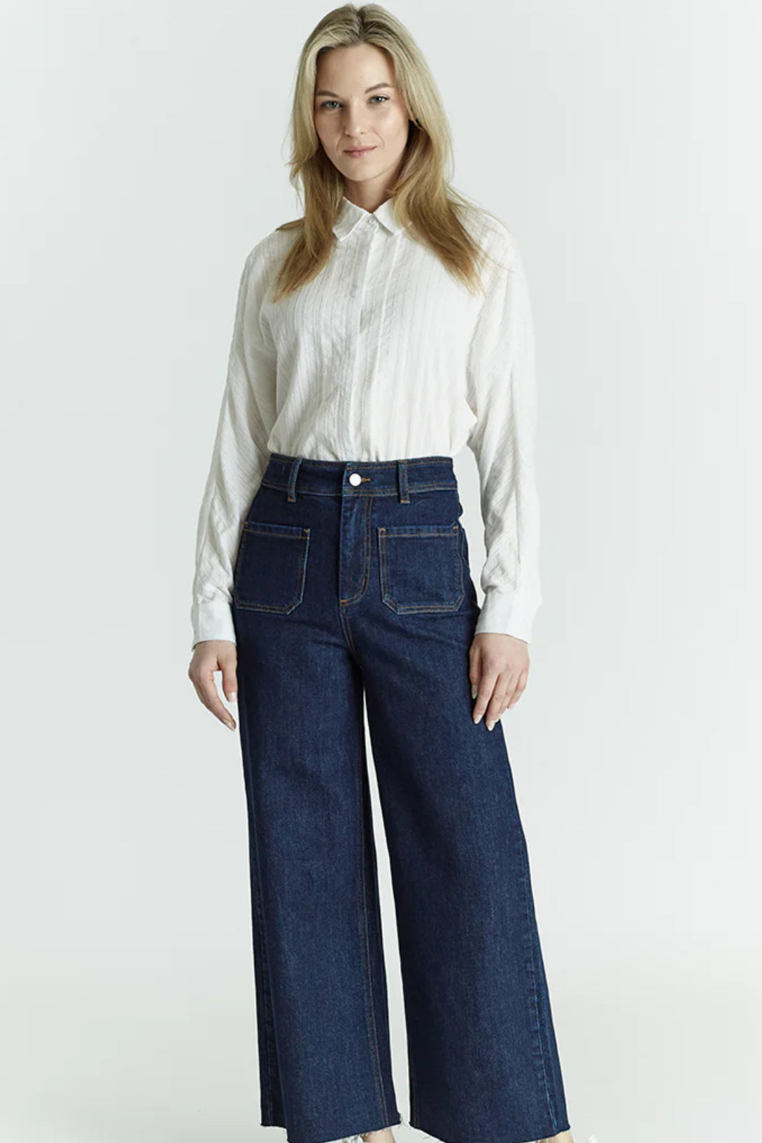 Nori High Waist Distressed Cropped Wide Leg, by Hidden