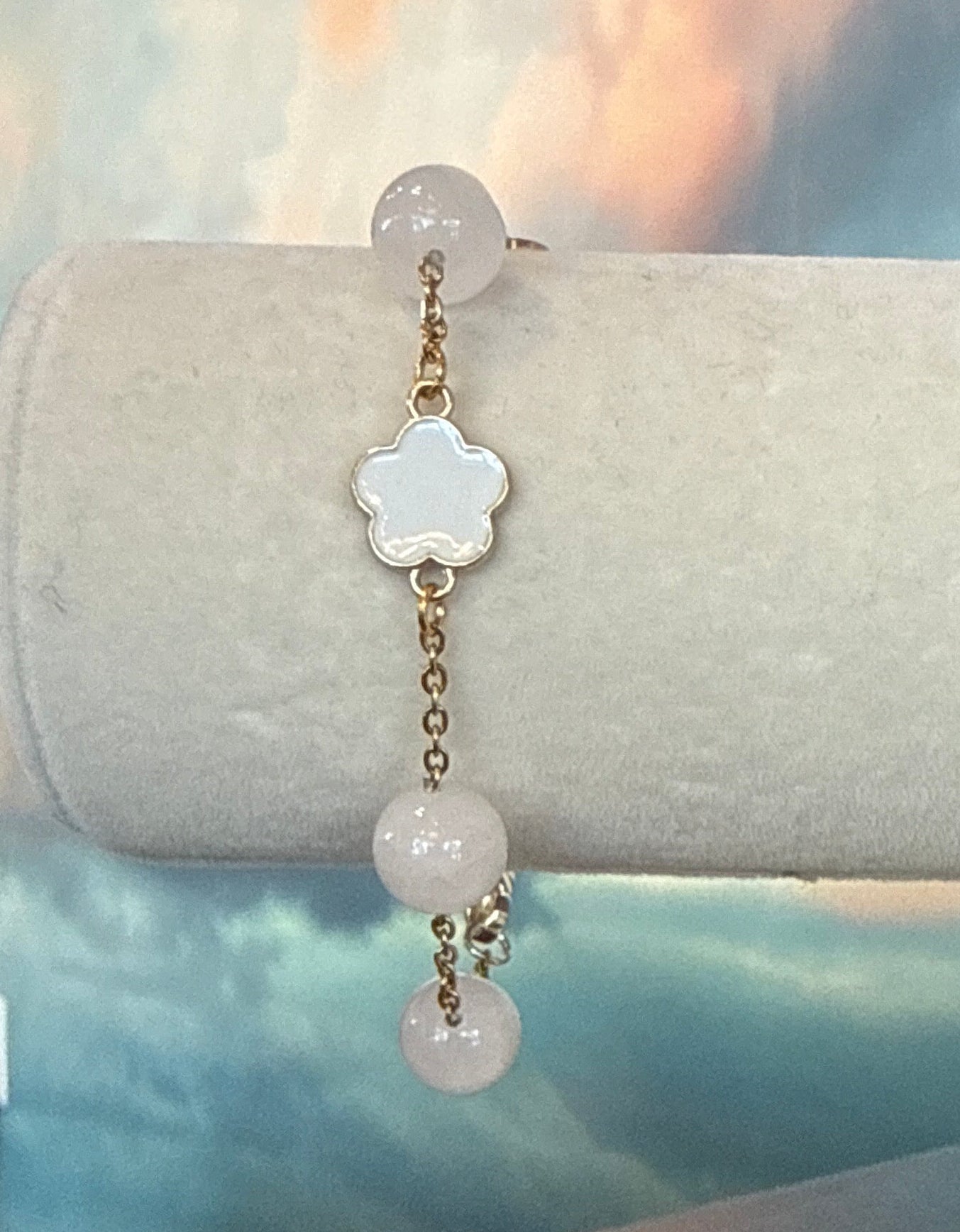 Zhanna Jewelry, Enamel Clover leaf with rose quartz