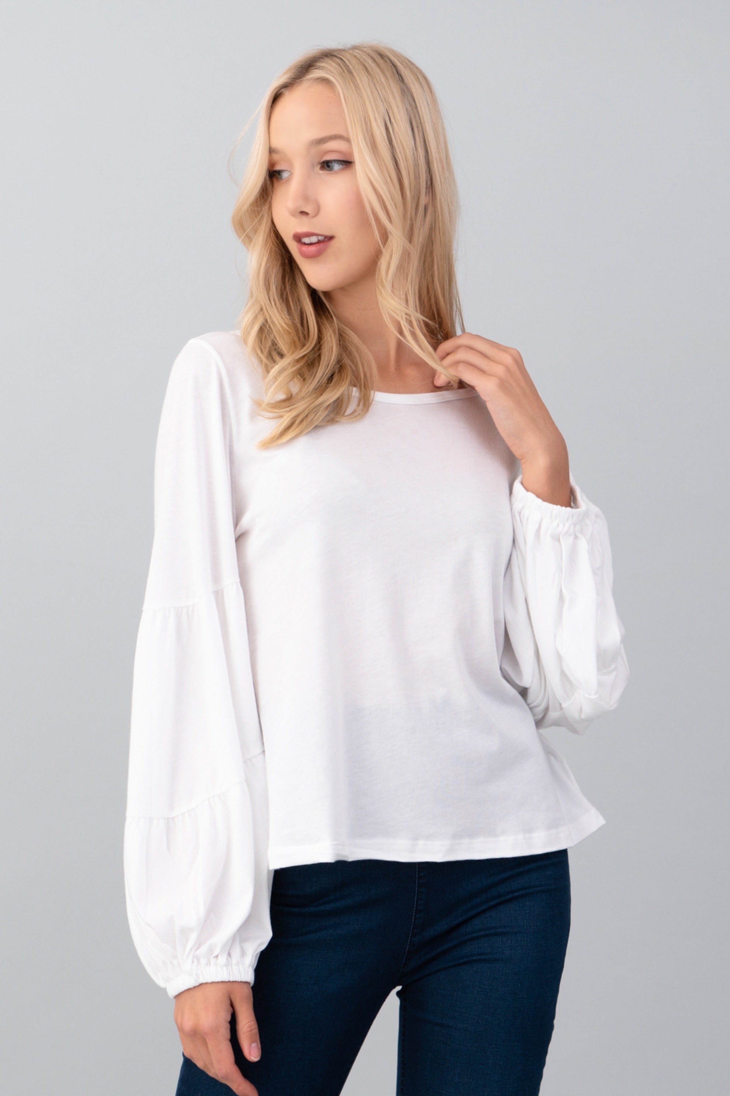 Sunday Edition by LE LIS -Round Neck Long Sleeve Smoked Top