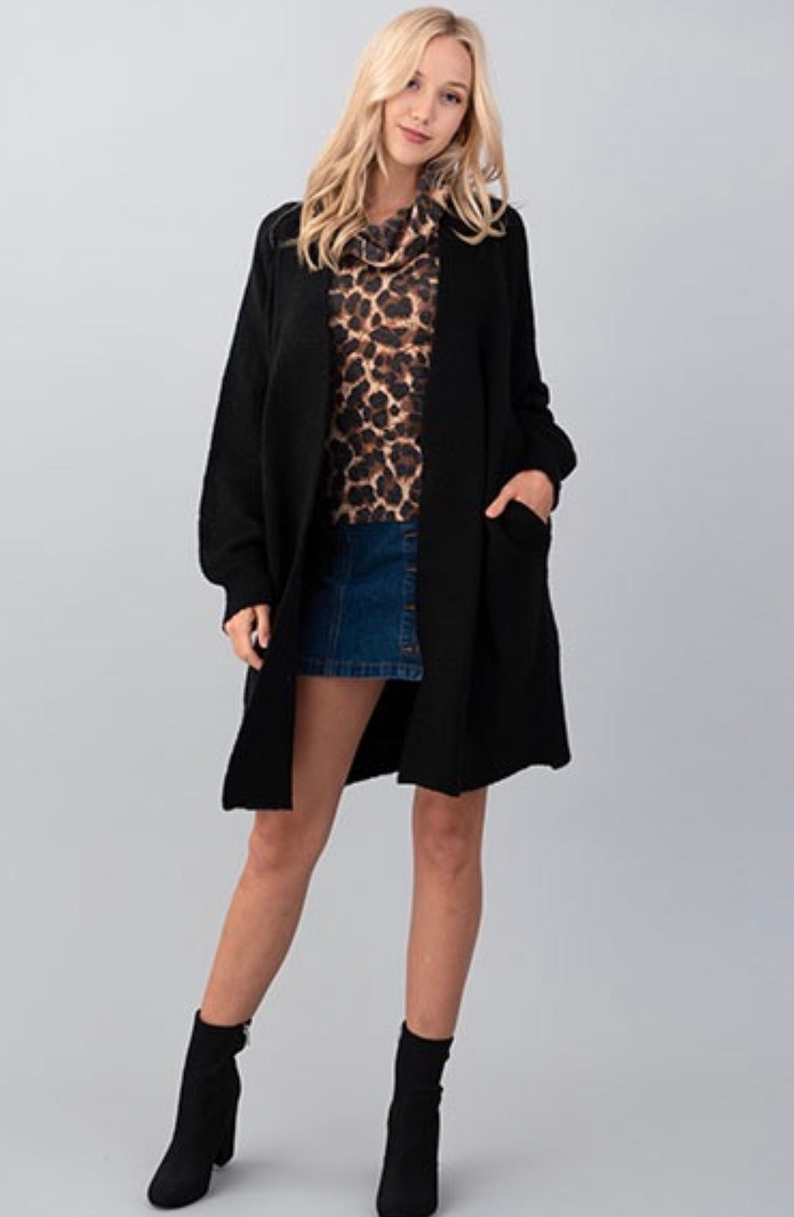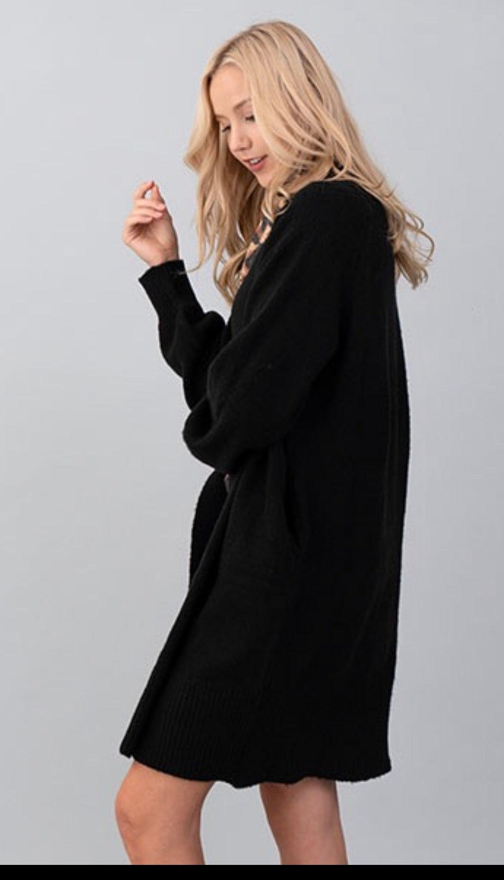 Open Cardigan Sweater in Black, Hashttag