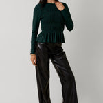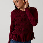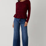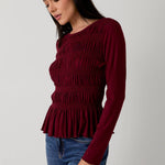Sunday Edition by LE LIS -Round Neck Long Sleeve Smoked Top