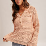 Stay cozy and stylish with this Hem&Thread V Neck Crochet Hoodie, a perfect blend of relaxed comfort and intricate detail. The breathable open-knit fabric makes it an ideal layering piece for breezy days or beach outings. Its classic V-neckline and functional hood add a modern, laid-back edge to a timeless crochet look.