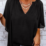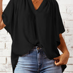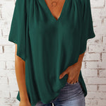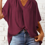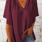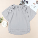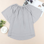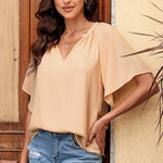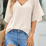 Gathered Detail Notched Neck Flutter Sleeve Top (Various colors)