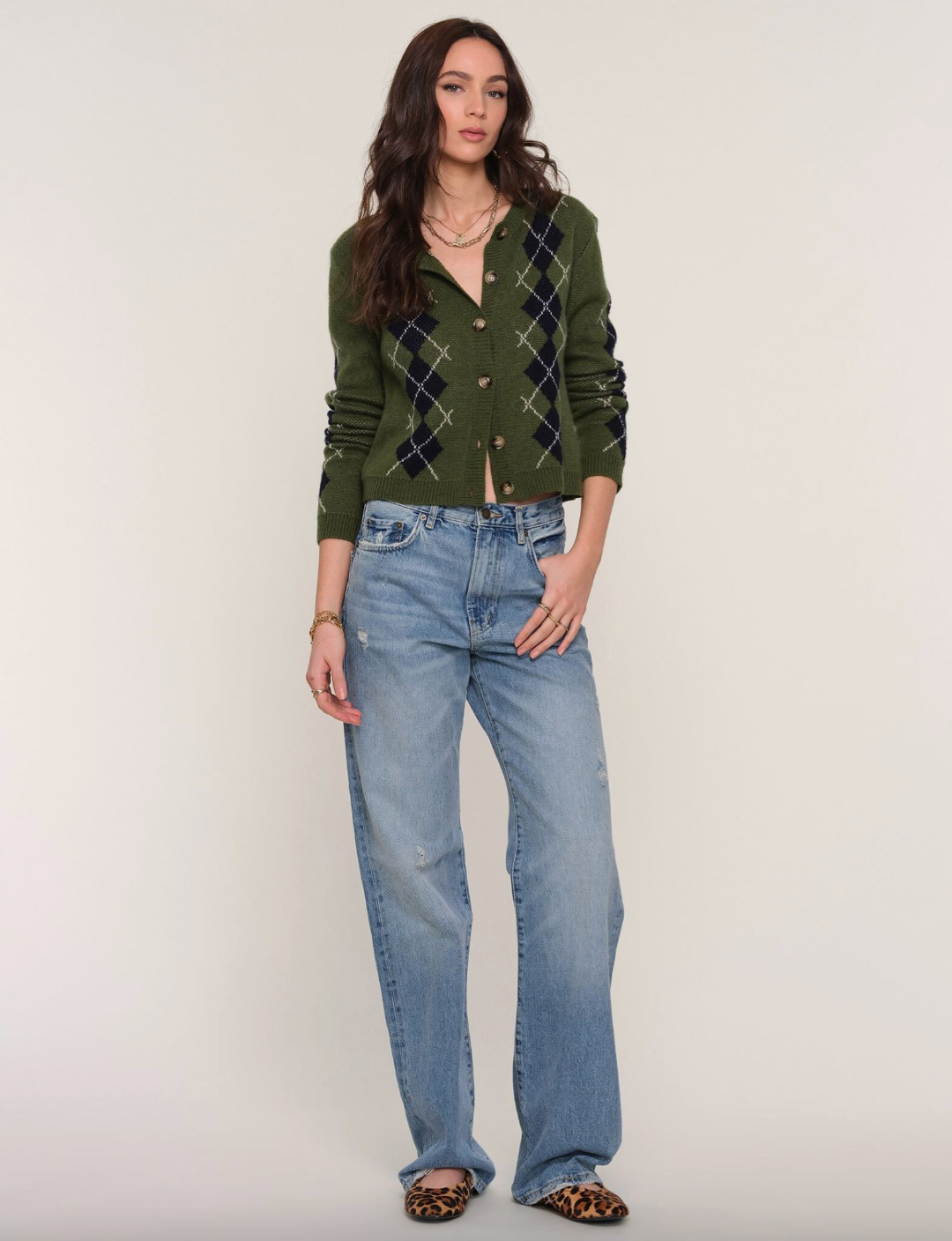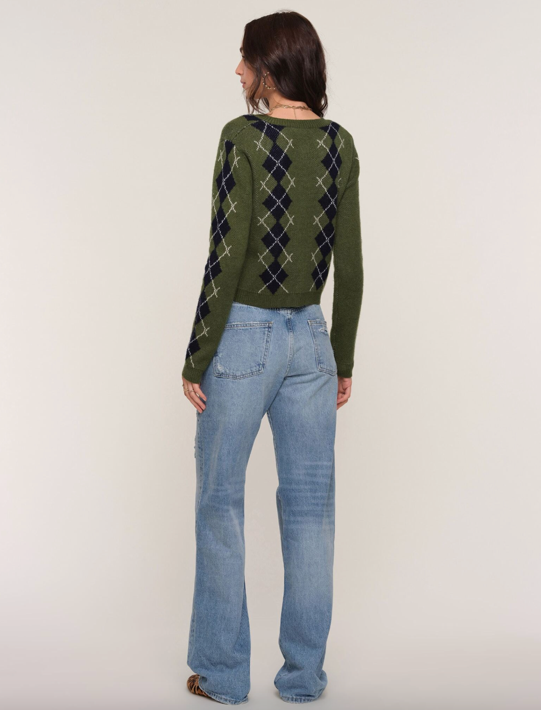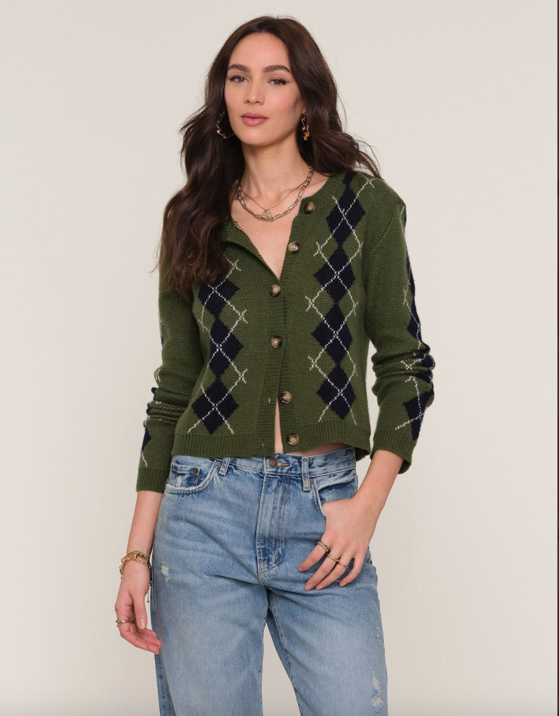 The Borgia Cardi is a crew neck, relaxed fit knit. Made from a cashmere blend, it features a jacquard argyle pattern along the front body and sleeves.