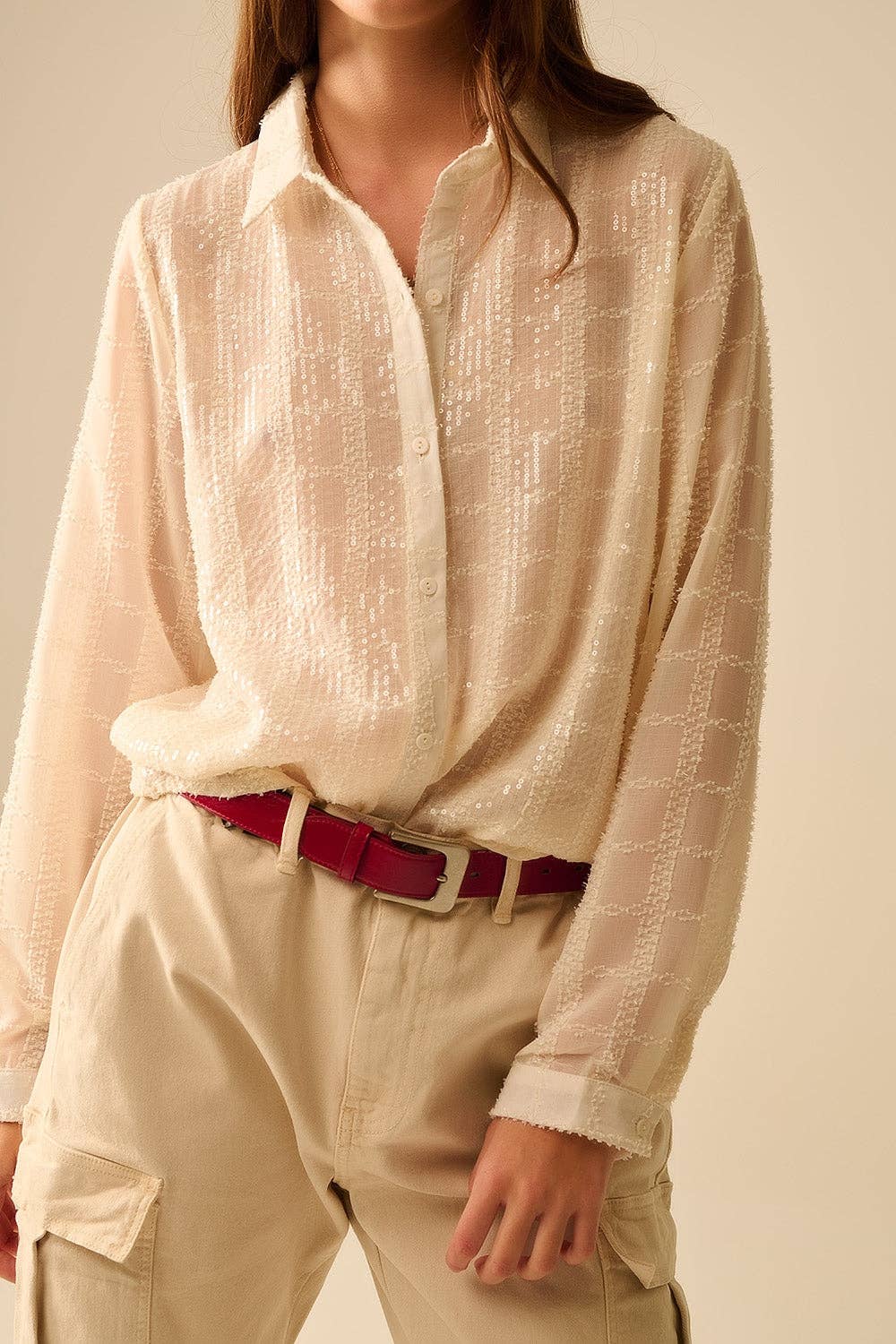 Q2 - Ivory Chiffon Shirt with Sequin Detail