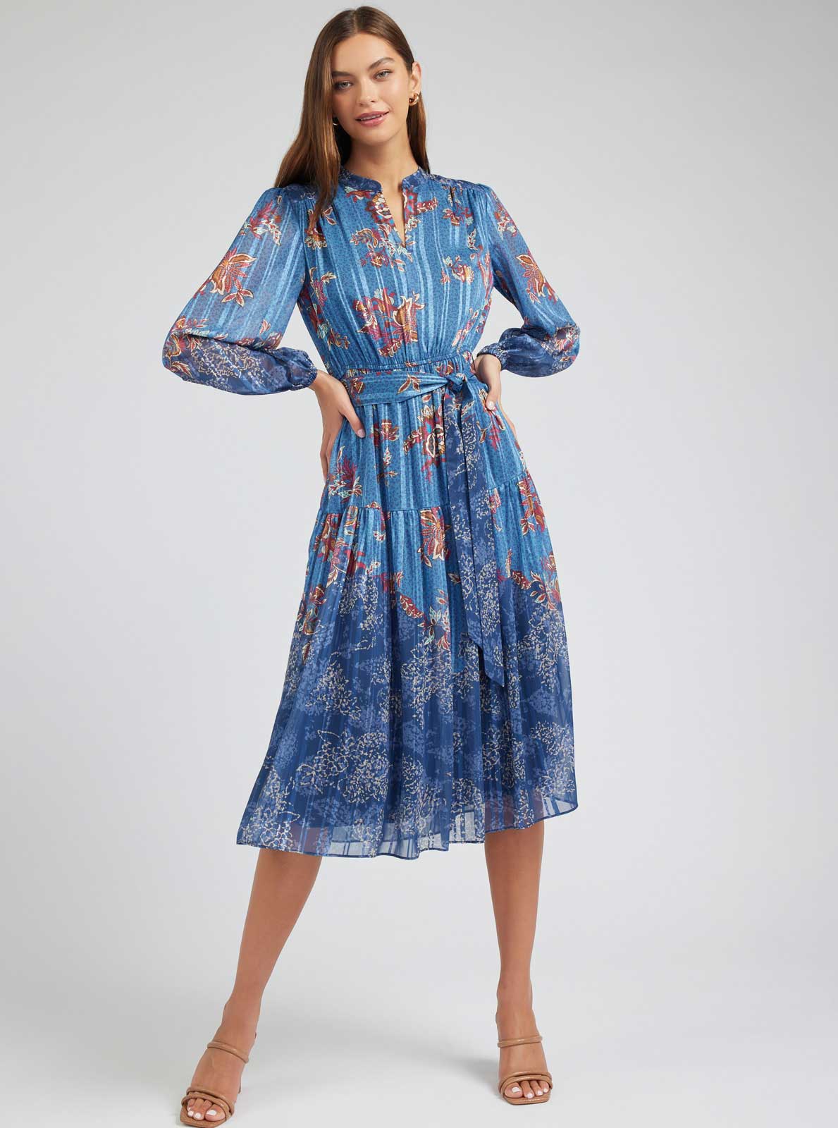 Current Air - Floral Printed Tiered Midi Dress