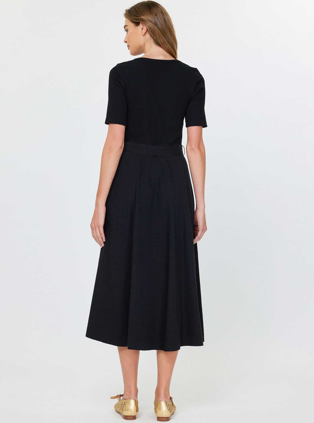 Current Air - Knit Top And Woven Skirt Combo Midi Dress