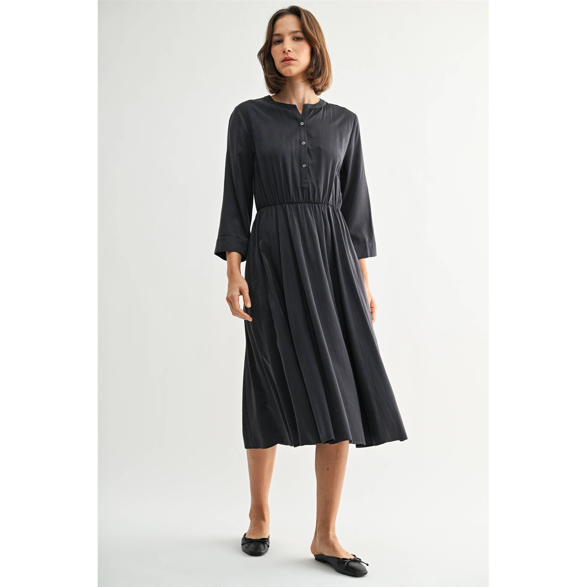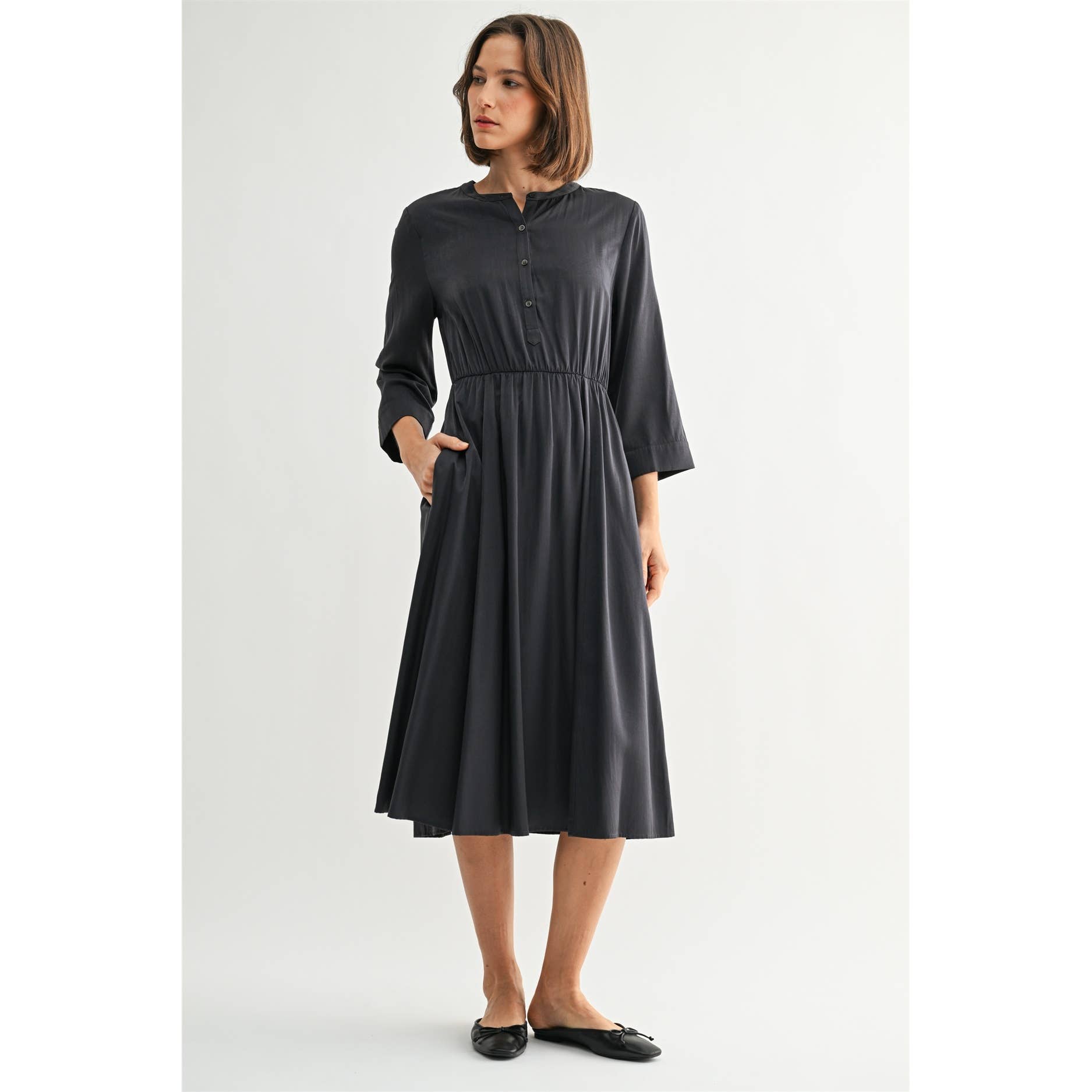 FUN2FUN - BUTTONDOWN DETAIL ELASTIC WAIST SHIRT DRESS