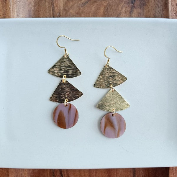 Let your ears do the talking with Anya! These glamourous mauve and copper statement earrings are sure to get heads turning and double the glam with their gold triangle charms. Be bold and beautiful with Anya - the perfect statement accessory!