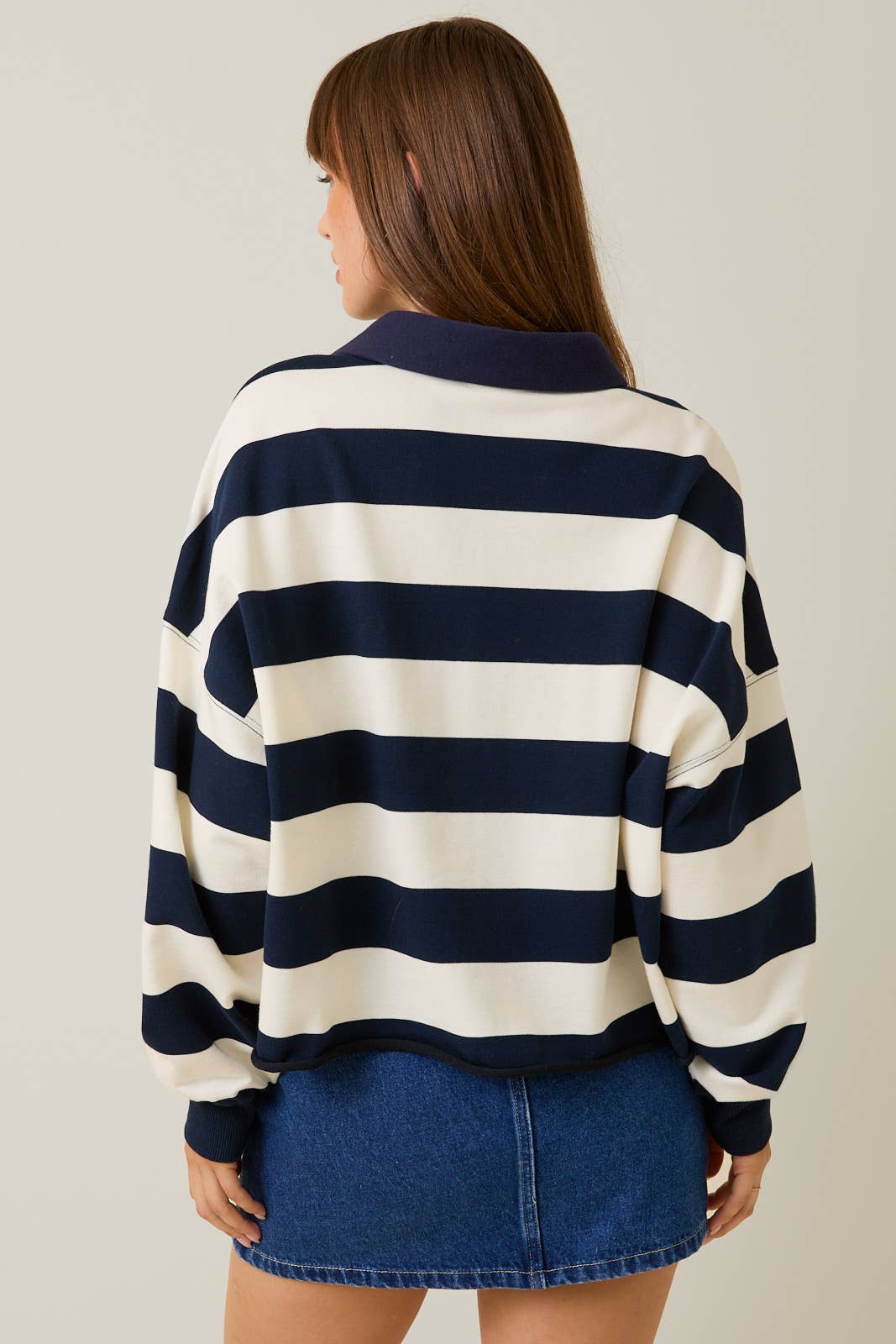 Sporty and casual, the Rugby Polo Top by Le Lis features bold stripes and front button details for a relaxed everyday look.