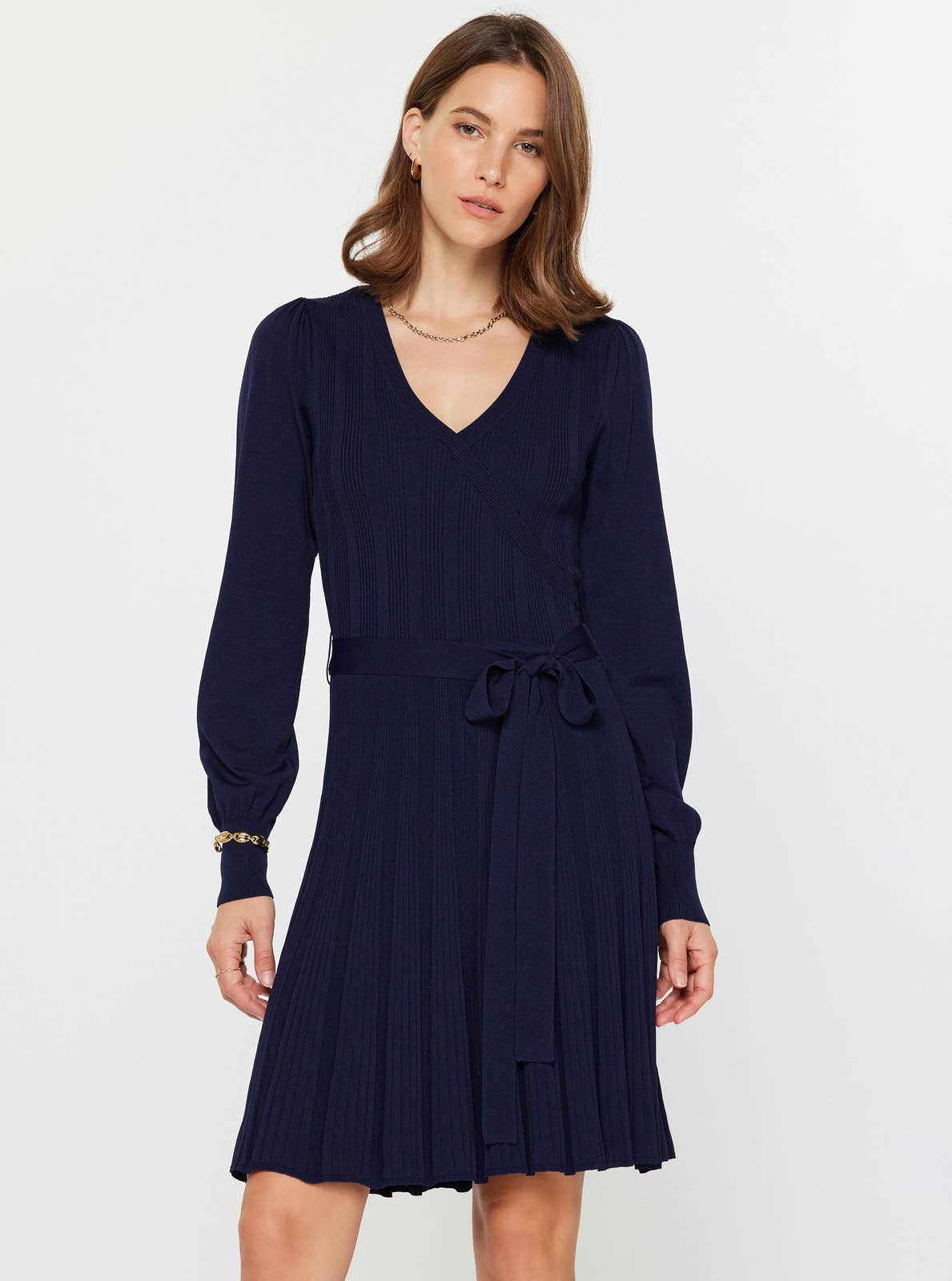 Current Air - Pleated Sweater Mini Dress W/waist Tie