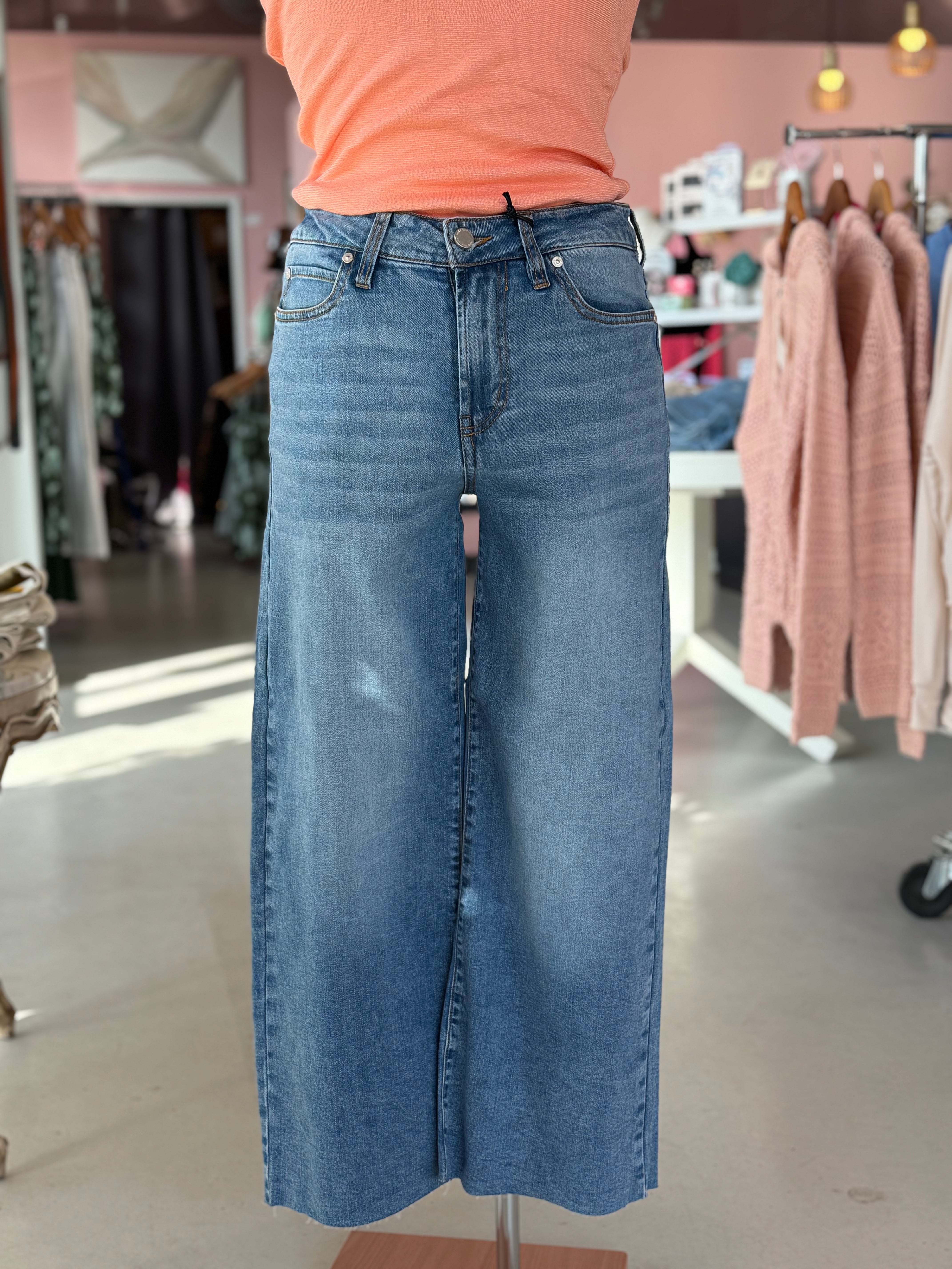 Vervet by Flying Monkey Mid Rise Distressed Cropped Flare Jeans (online only)