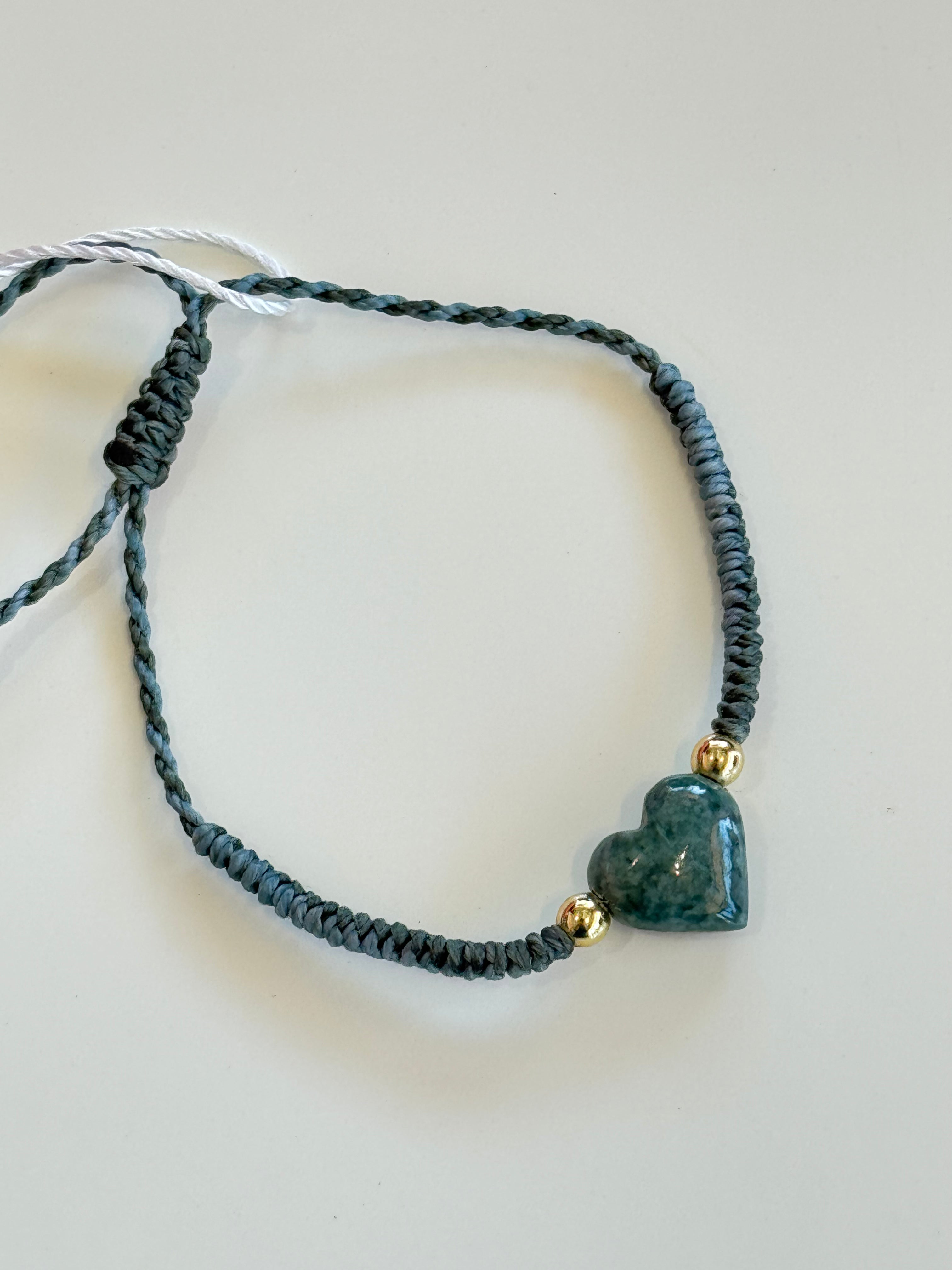 Handmade Jade heart necklace with adjustable strap. Handmaid in Guatemala.