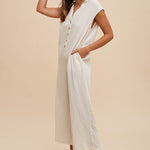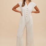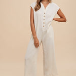 Annie Wear Button Detail Wide Leg Jumpsuit with Pockets