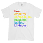 A powerful and inspiring garment designed to ignite young hearts and minds with the values that shape a better world. Teaching children about these values is crucial, and our tee acts as a visual reminder of the principles we aim to instill in the next generation. It encourages them to embrace empathy, show compassion towards others, foster inclusivity, and stand up for justice. By wearing this tee, your child becomes an ambassador for positive change.