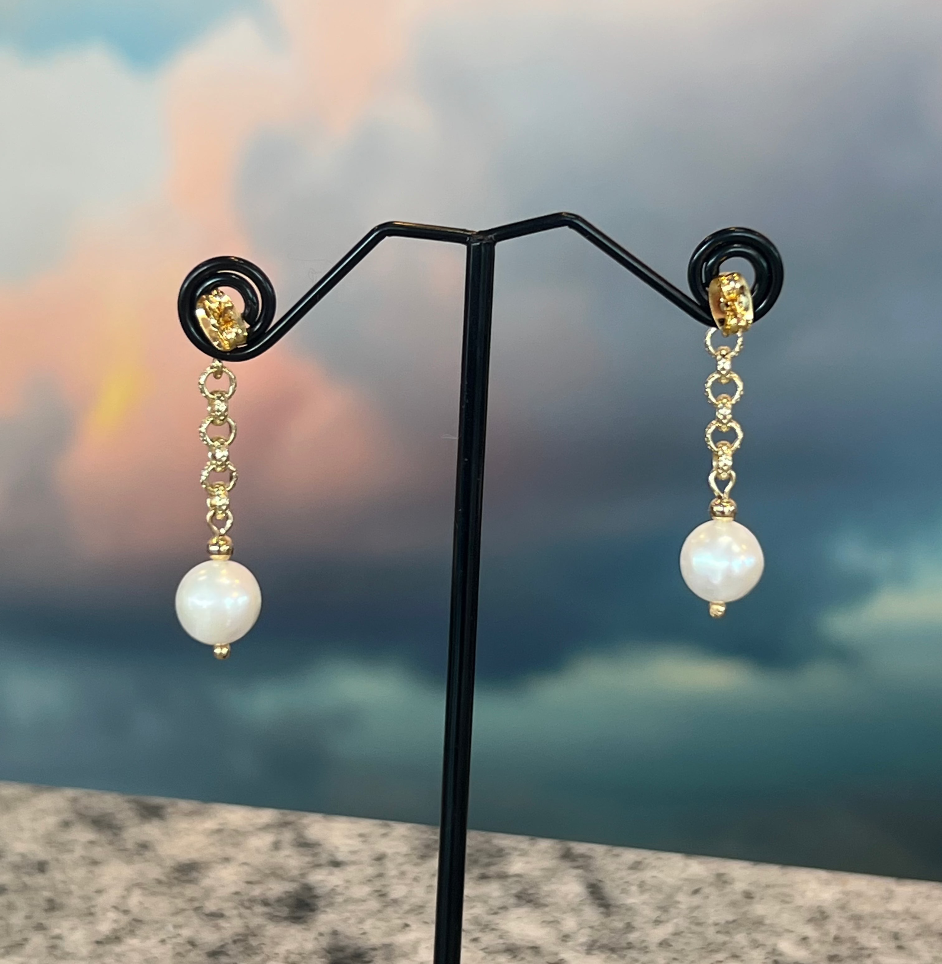 Pearl and Gold Chain Earrings, Zhanna Jewelry