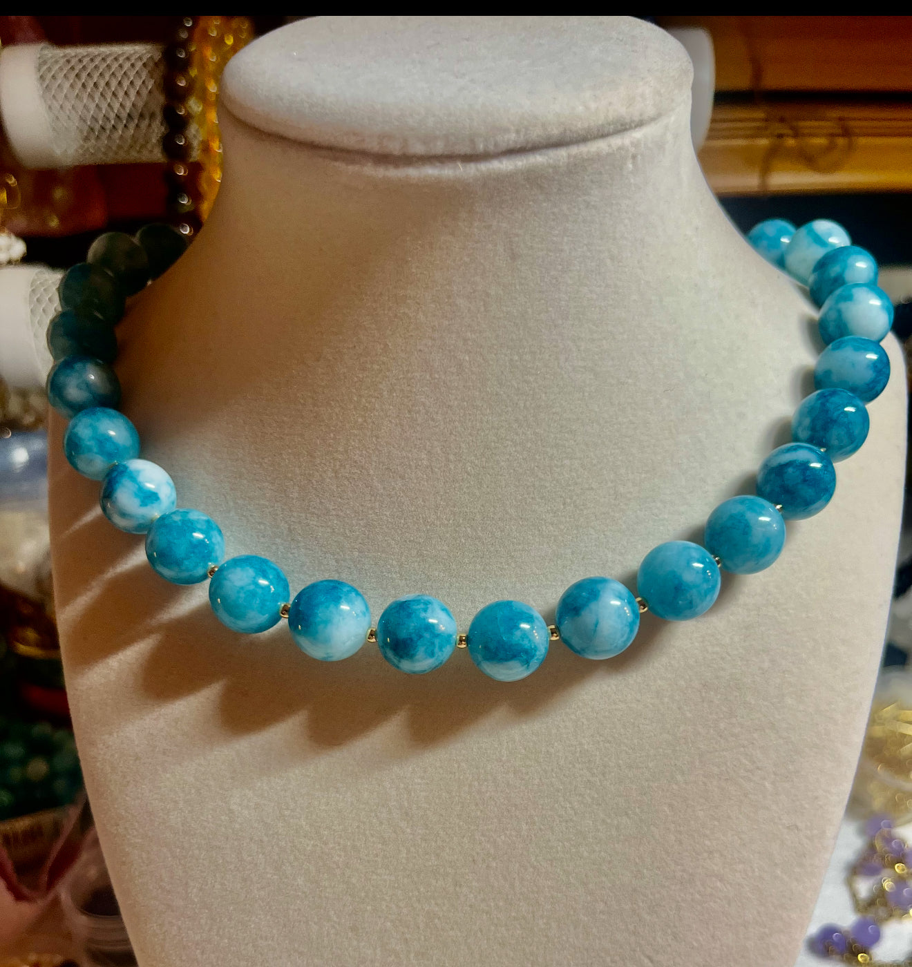 Hand made and local woman owned business larimar large ball gemstone necklace