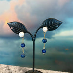 Zhanna Jewelry Pearl and lapis lazuli posted earrings