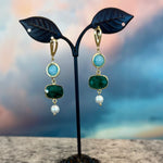 Zhanna Jewelry. Larimar, Emerald and Pearl earrings