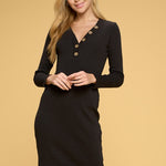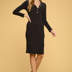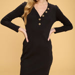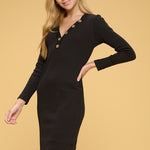 Cotton Rib Knit Midi Bodycon Dress with Buttons, Renee C