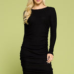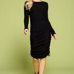 Drawstring Ruched Side Rib-knit Dress, Renee C