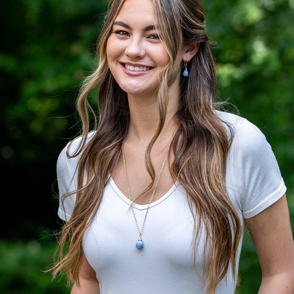 Anju Jewelry - Gold-Plated Blue Lace Agate Teardrop Necklace