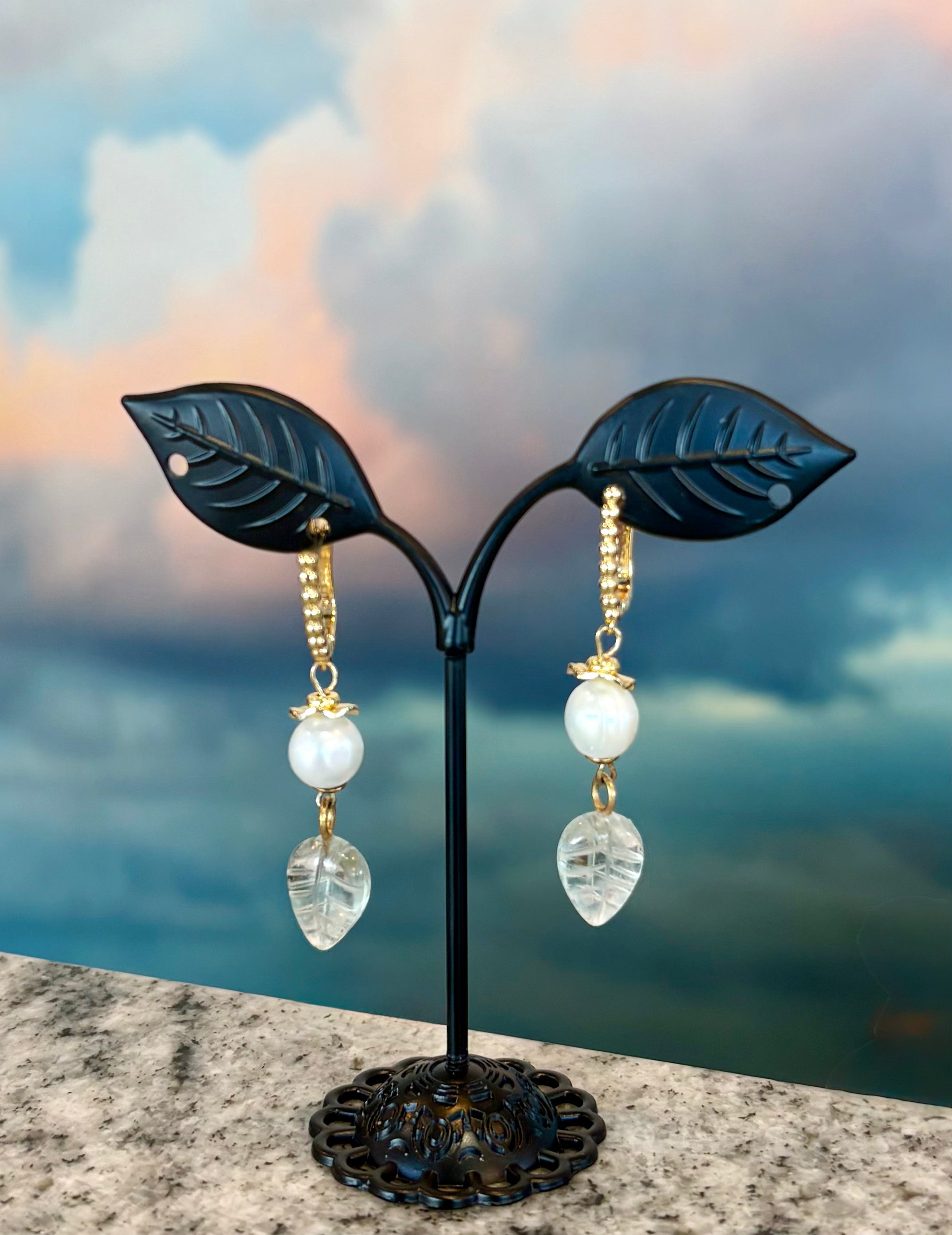 Zhanna Jewelry. Pearl and green carved amethyst leaf earrings