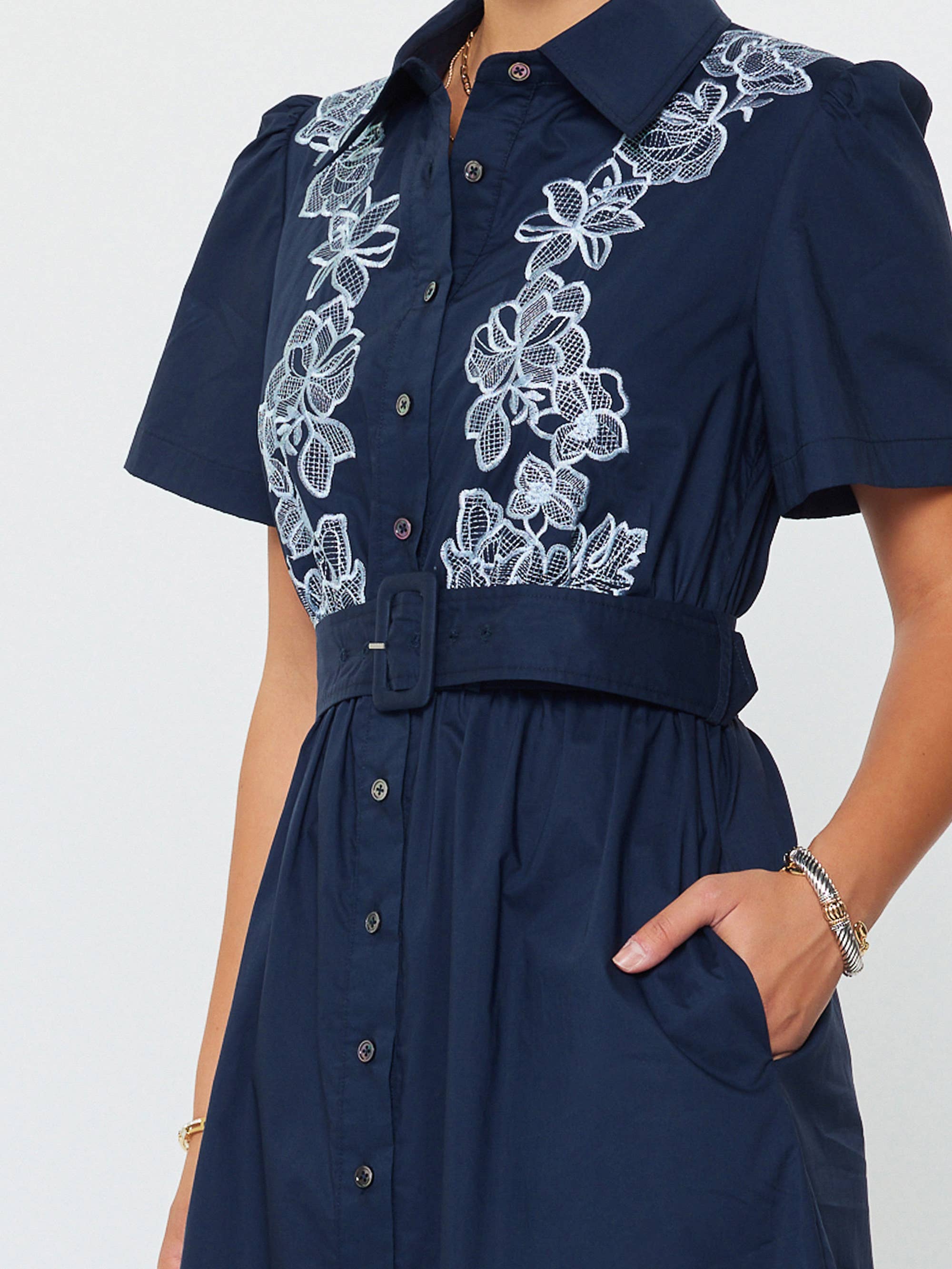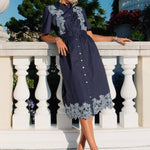 Current Air - Embroidered Button Down Midi Dress