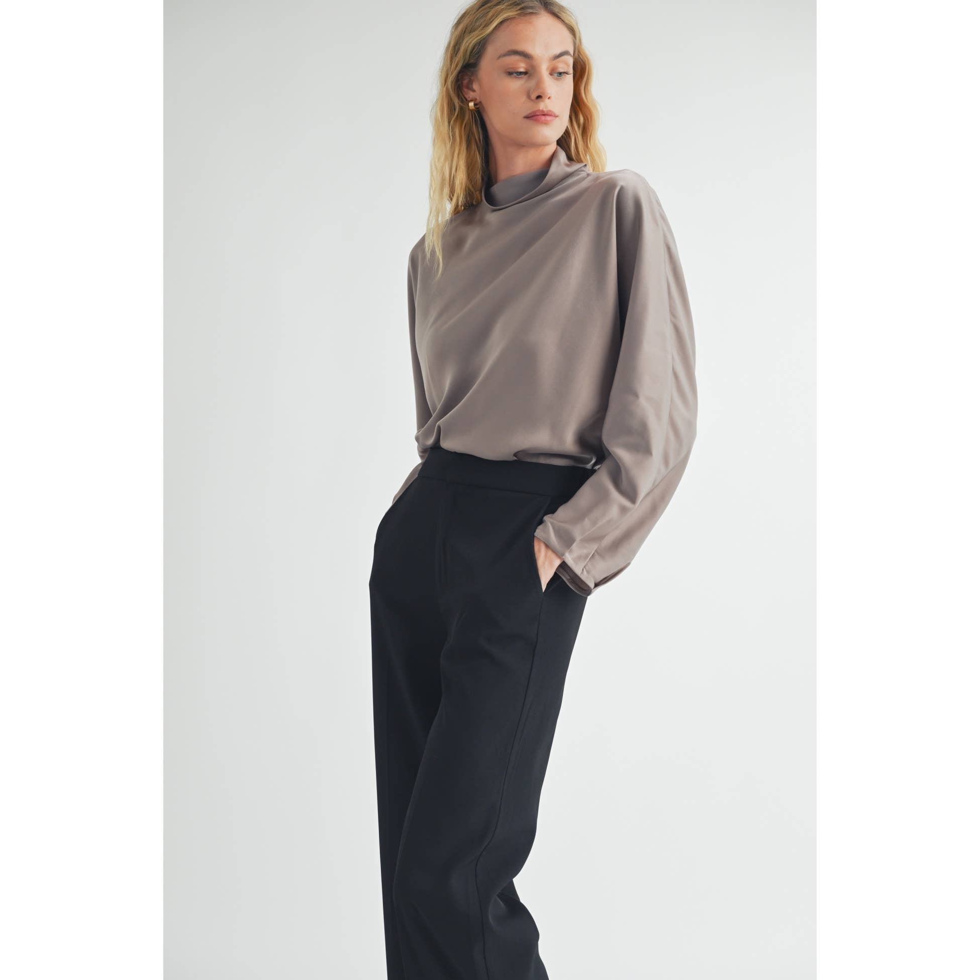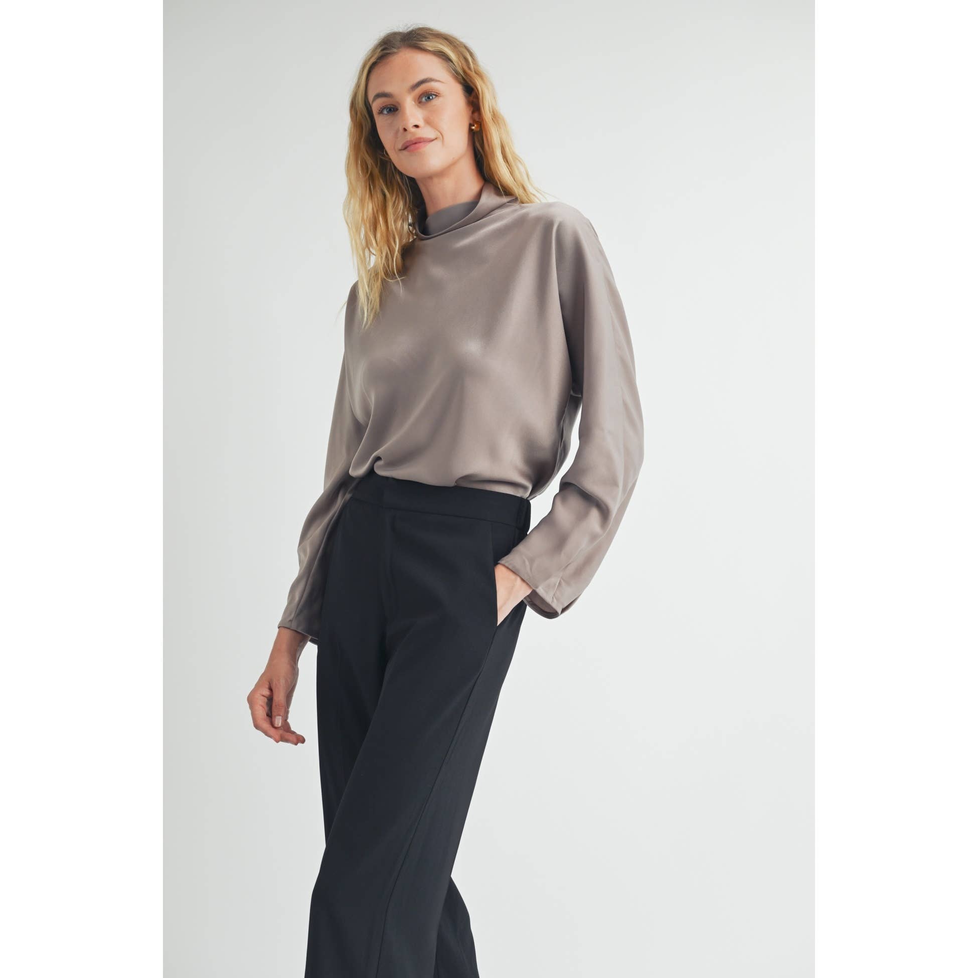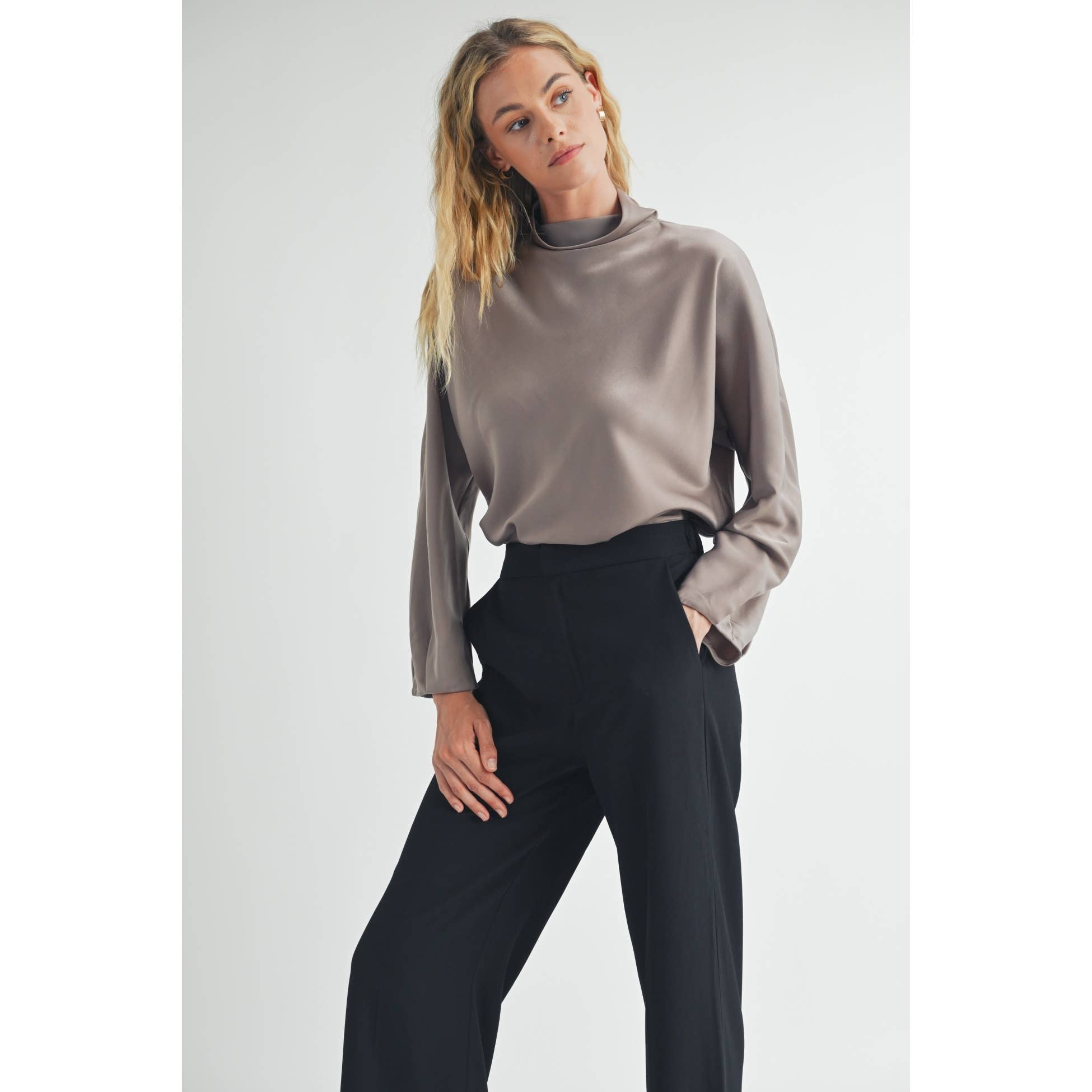 FUN2FUN - SATIN MOCK NECK BLOUSE