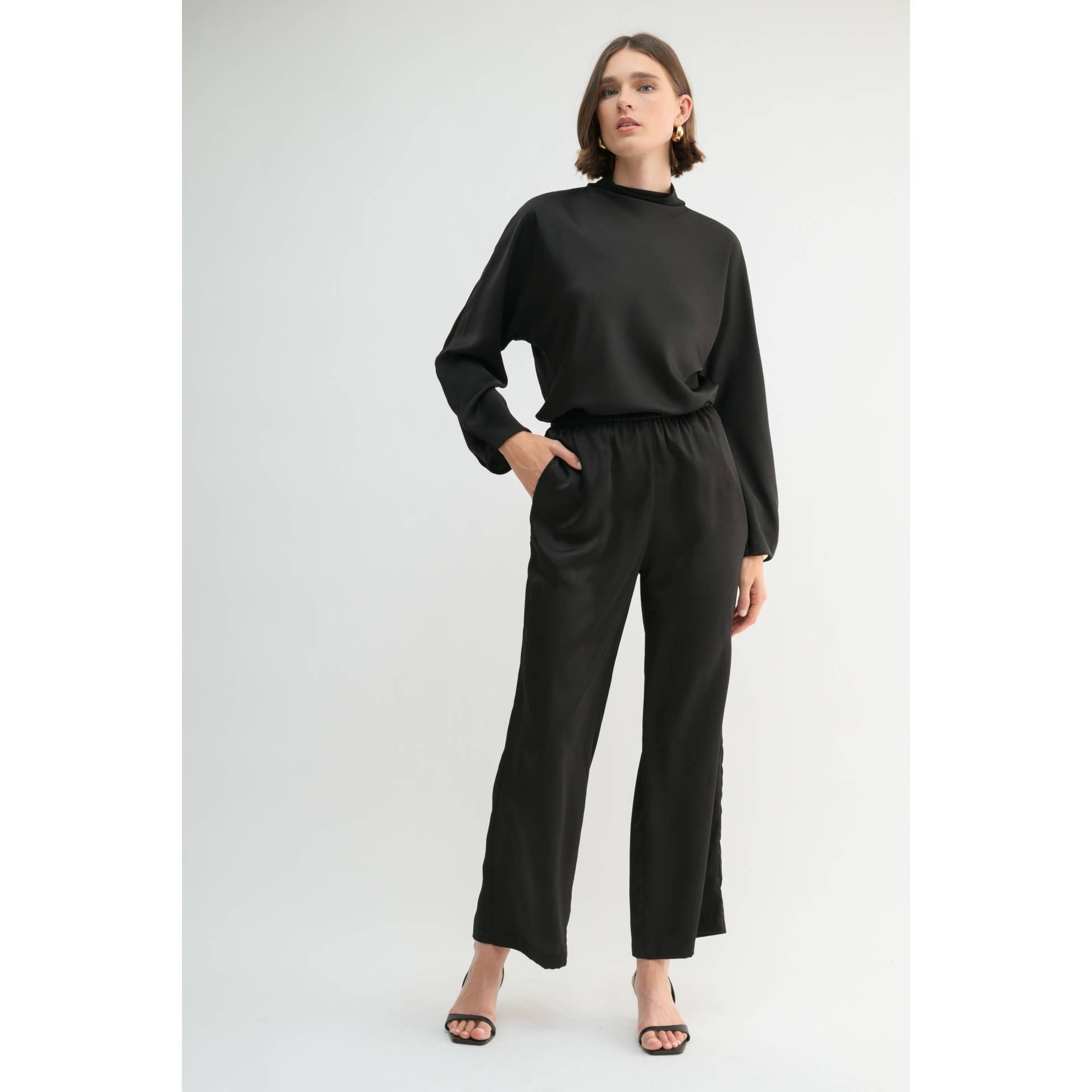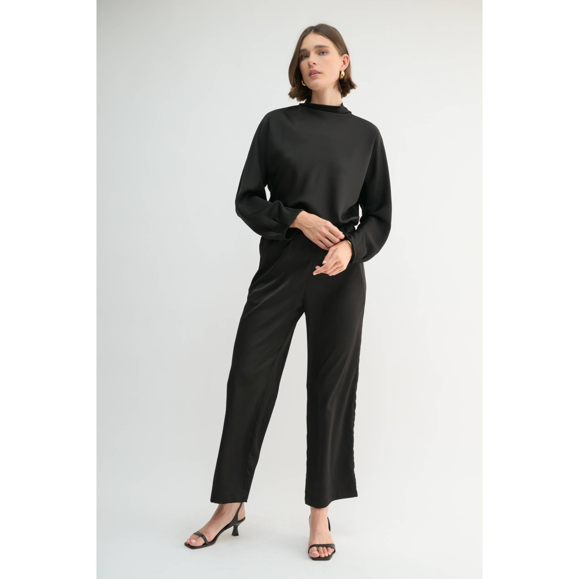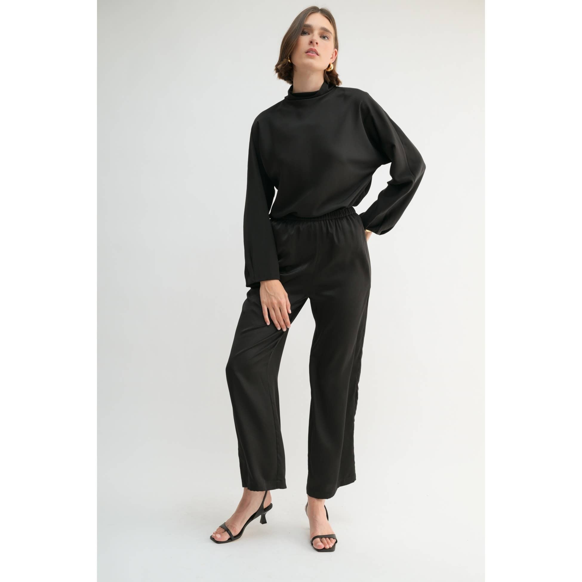 FUN2FUN - SATIN MOCK NECK BLOUSE