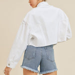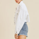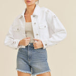 CROPPED DISTRESS DENIM JACKET , Just Black Denim