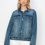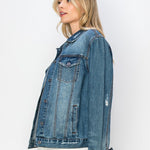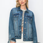 RISEN Plus Size Distressed Button Up Jacket