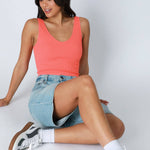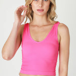 Size: One Size. Our this crop top can now be worn with a scoop or v-neck Fabric: 92% Nylon / 8% Spandex. Made in USA