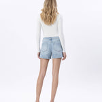 Flattering and functional, these A-line shorts feature a high-rise waist, distressed details, and built-in tummy control panels for a smooth, sculpted fit. Made from comfort stretch denim for all-day wearability.