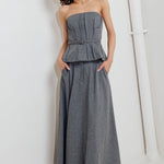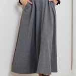 A solid woven midi circle skirt featuring front closure and side pockets. Matching top FT1655