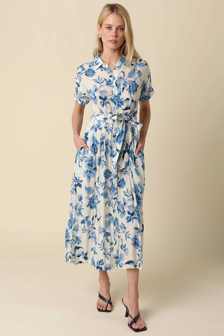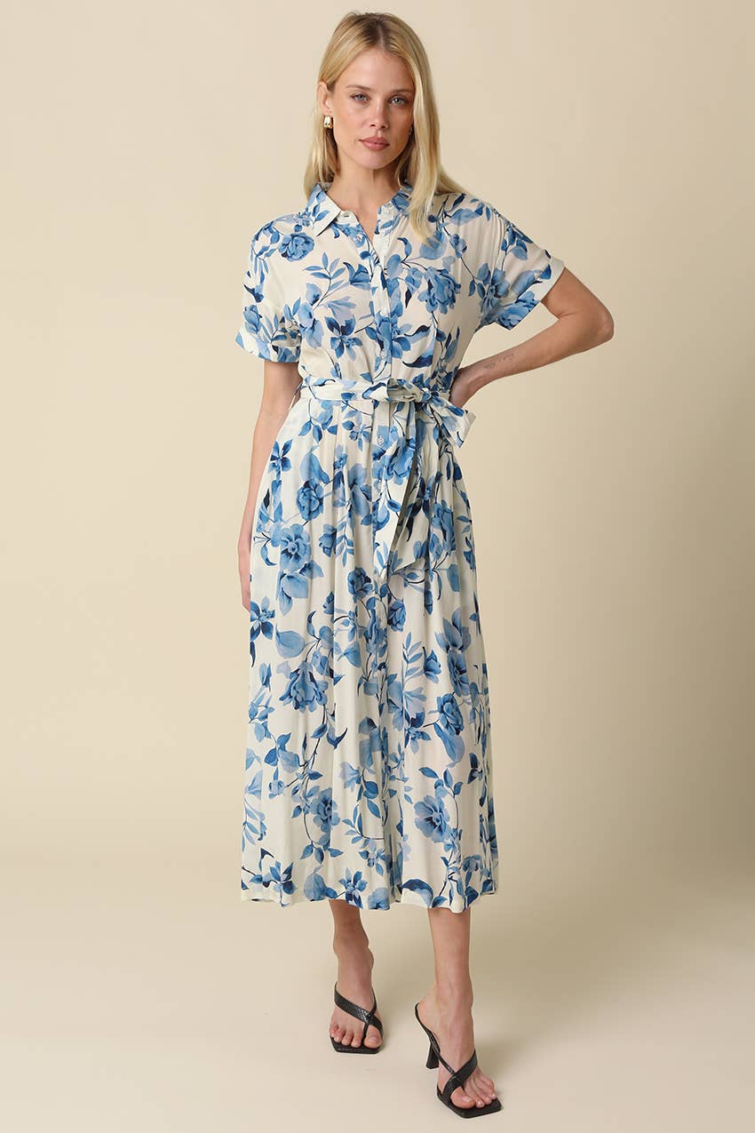 Olivaceous - Annika Blue Floral Belted Maxi Dress