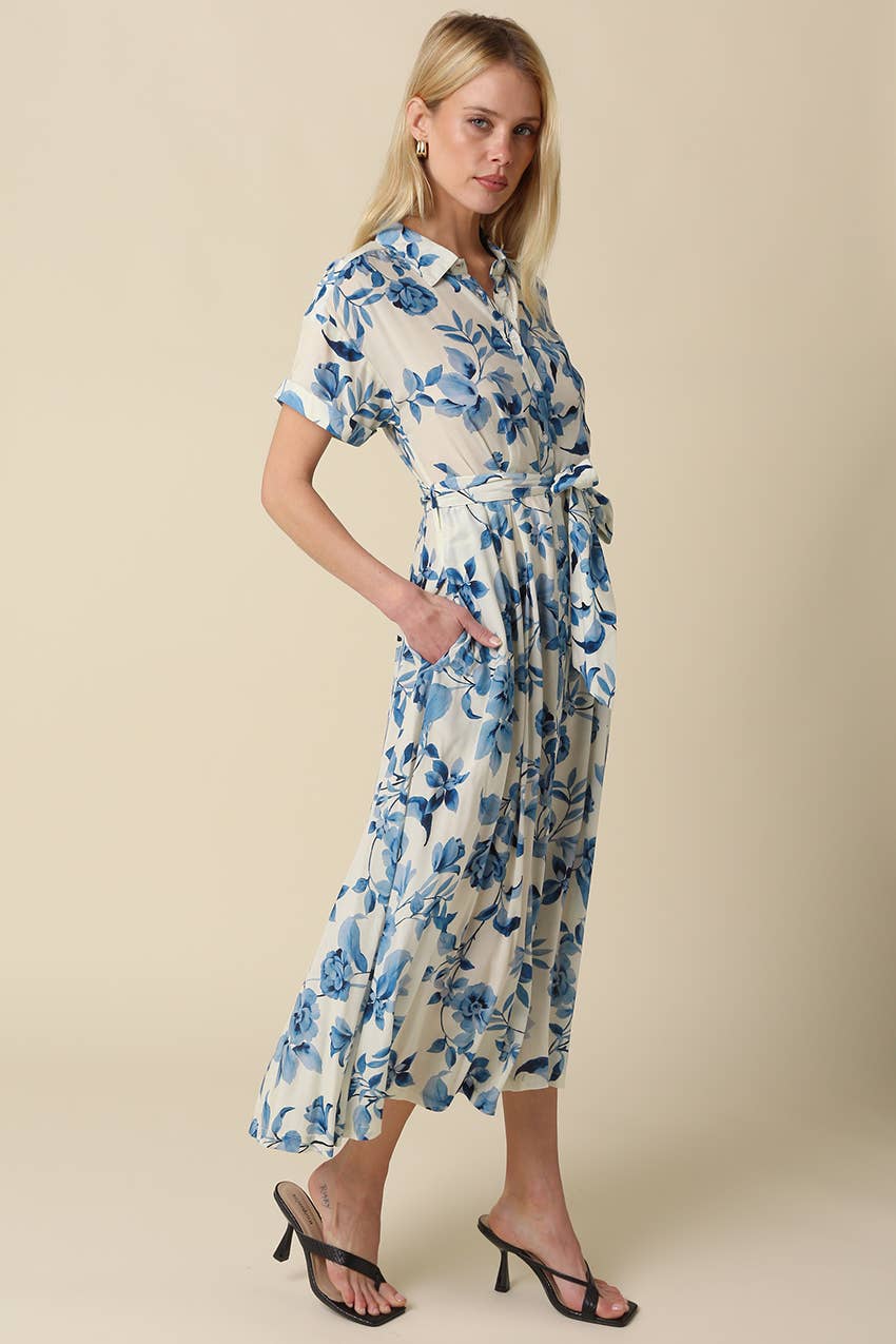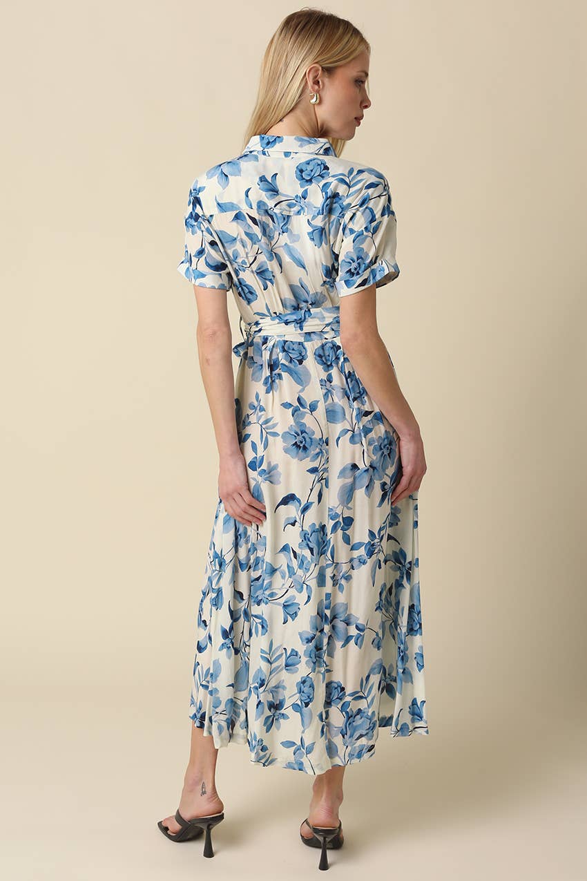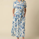 Olivaceous - Annika Blue Floral Belted Maxi Dress