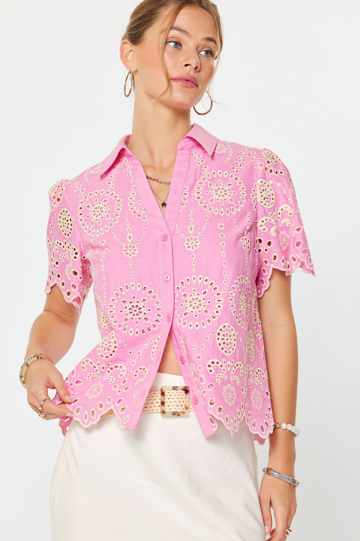 Eyelet Embroidered Short Sleeve Shirt, Current Air