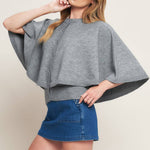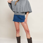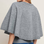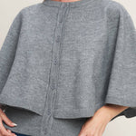 A capelet sweater knit top with front button closure