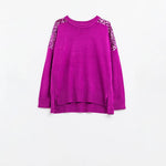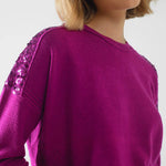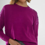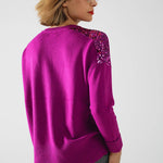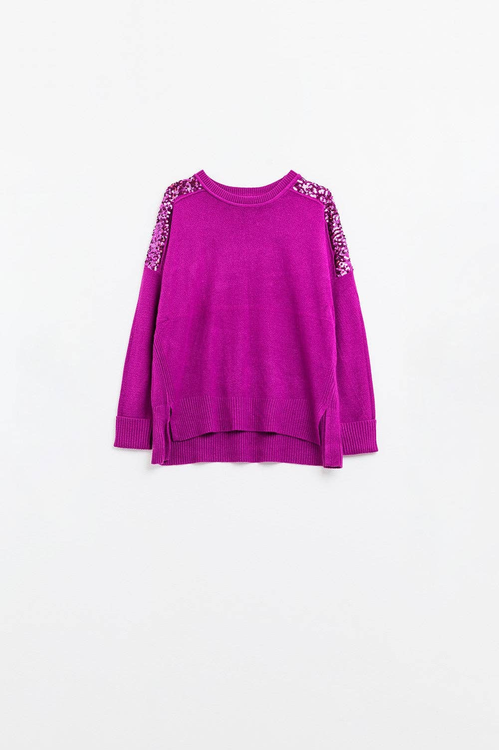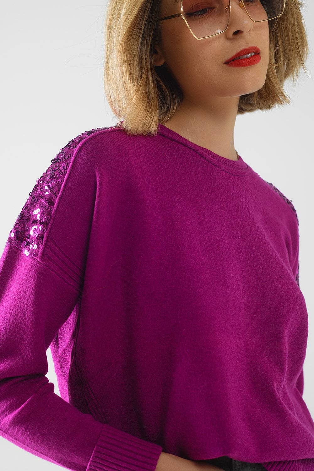 Q2 Fuchsia Long Sleeve Sweater With Sequins on The Shoulders
