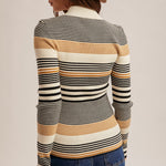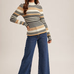 Stripe Mock Neck Rib Sweater, Hem and Thread