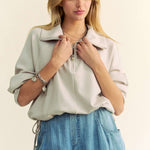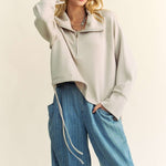 Davi & Dani Drawstring Hem Half Zip Raglan Sleeve Sweatshirt