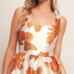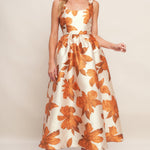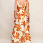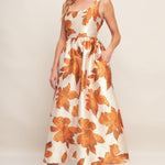 AUTUMNAL FLORAL WOVEN MIDI DRESS, Flying Tomato
