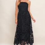 CAREFREE NIGHTS BLACK LACE MIDI DRESS, Flying Tomato