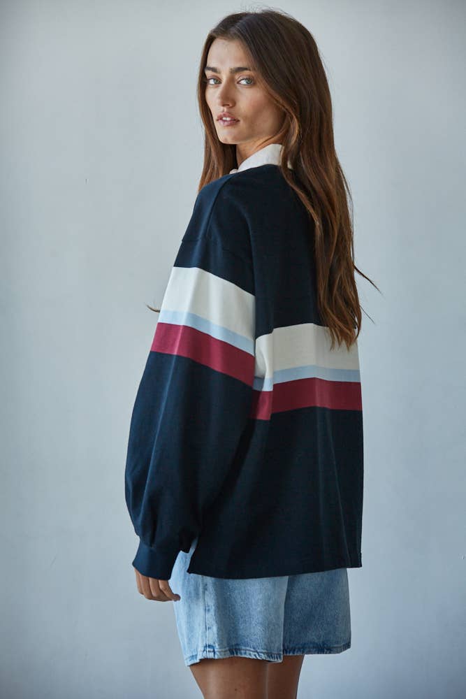 Cotton Striped Jersey Collar Pullover, By Together