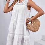 Eyelet Tie Neck Sleeveless Mini Dress (online only)